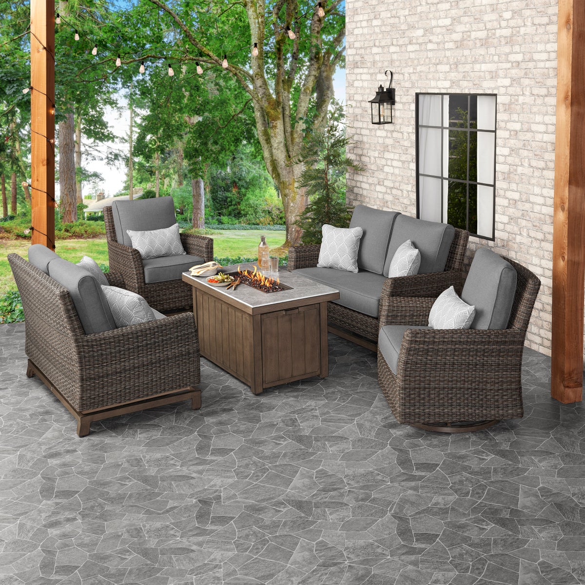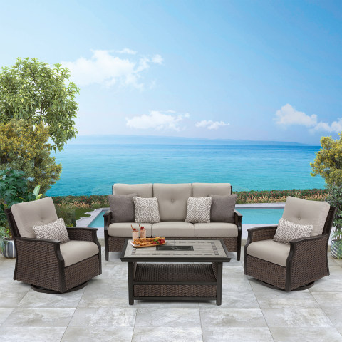 - Cushions and Pillows Are Made with Sunbrella® Fabric That Is Resistant to Stains, Mildew, Chlorine, and Fading