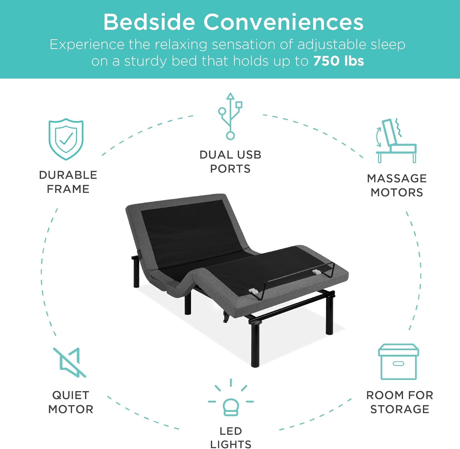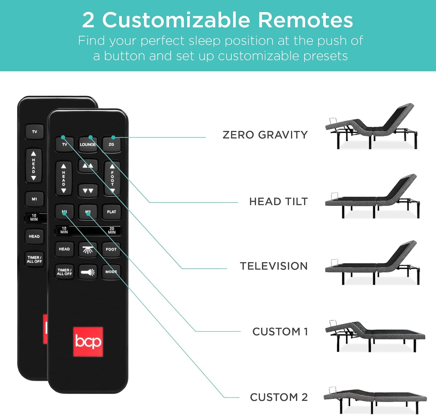 • Best Choice Products Ergonomic Twin XL Size Adjustable Bed Frame, Electric Base w/Wireless Remote Control, Nightlight, Massager, 2 USB Ports