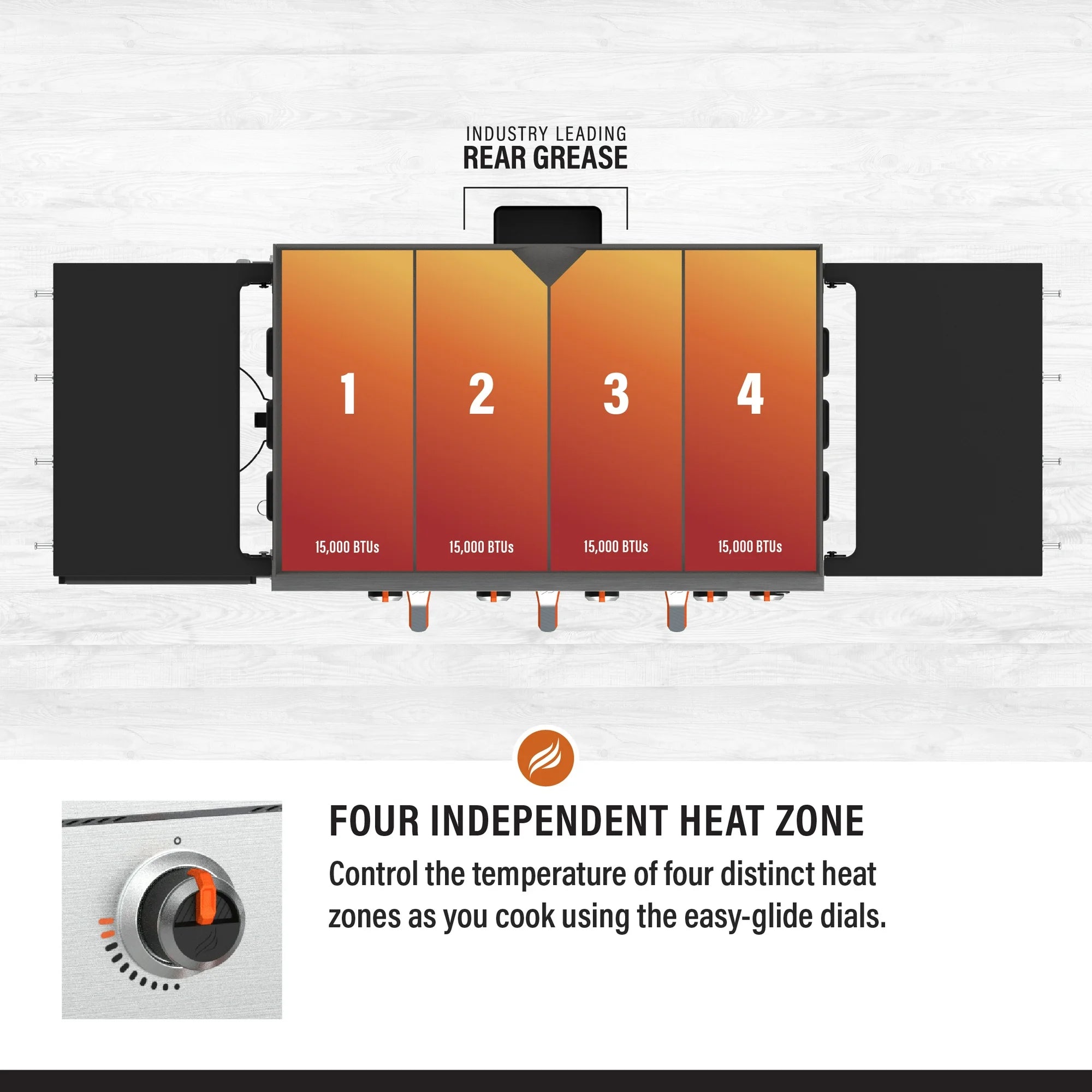 • 4 independently controlled cooking zones with a combined 60,000 BTUs