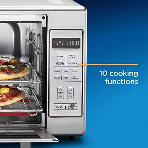 • Oster Extra-Large Air Fryer Oven, 10-in-1 Versatile Cooking Functions, Fits 2 Large Pizzas, Stainless Steel, Perfect for Holiday Hosting