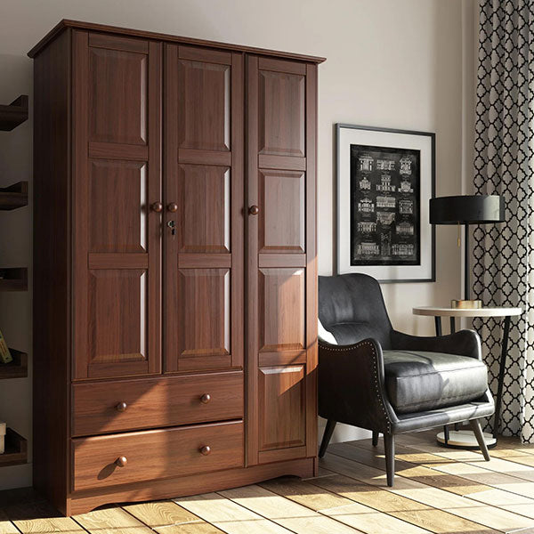 100% Solid Wood Grand Wardrobe Armoire - Mocha