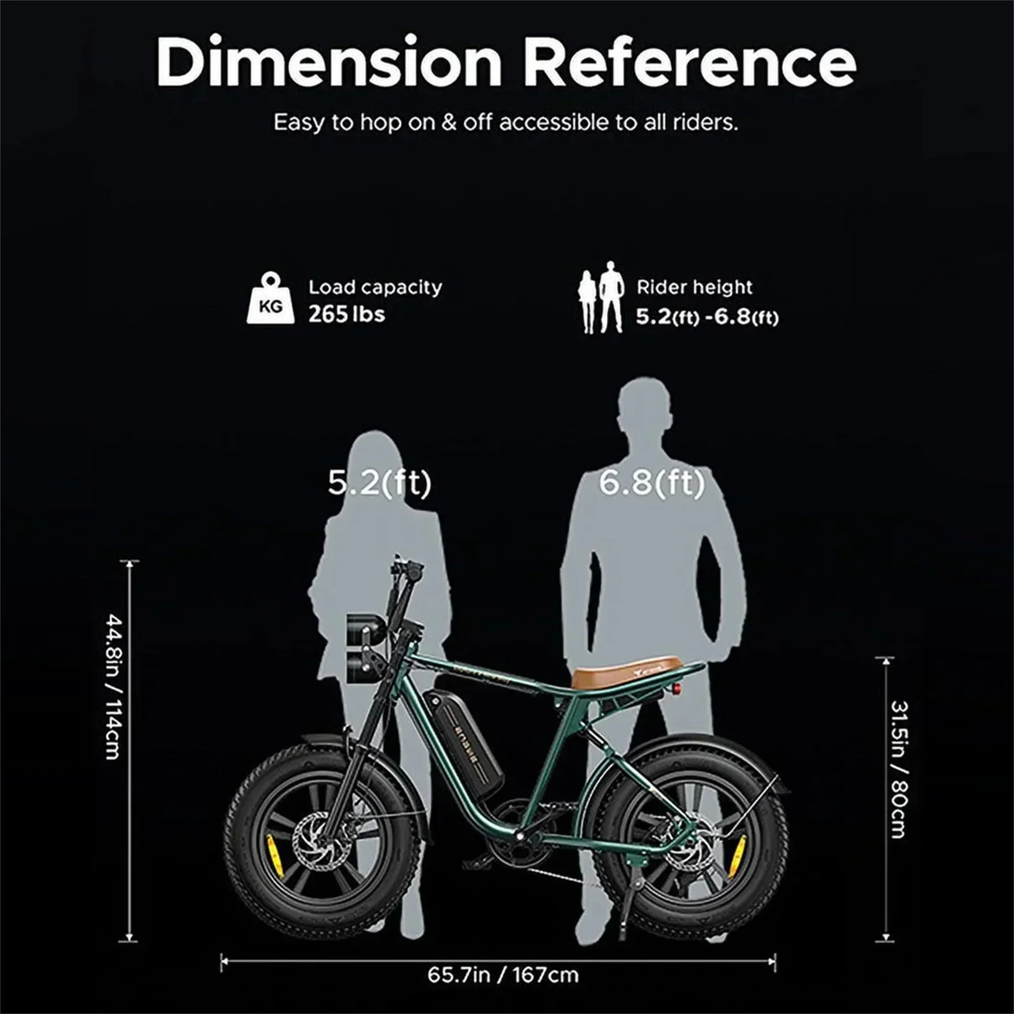 • 1000W Electric Bike for Adults, Retro-Style, 28mph, 94 Miles Range, 20 Fat Tires, Full Suspension, UL Certified