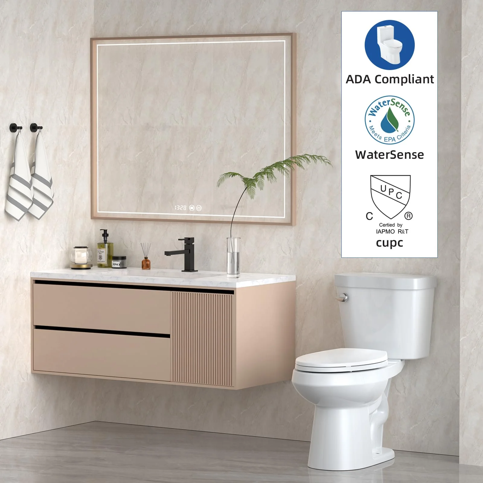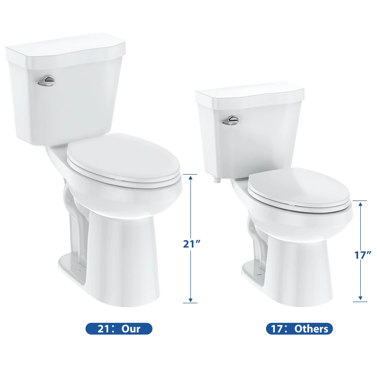 • 21Toilet, Elongated Toilets for Bathrooms, Two-Piece Toilet with Soft Close Seat, 1.28 Siphonic Flush Toilet with Universal Height ADA Cotton White-3