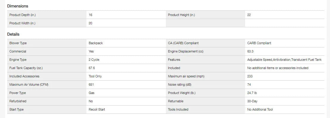 233 MPH 651 CFM 63.3cc Gas 2-Stroke Cycle Backpack Leaf Blower with Tube Throttle