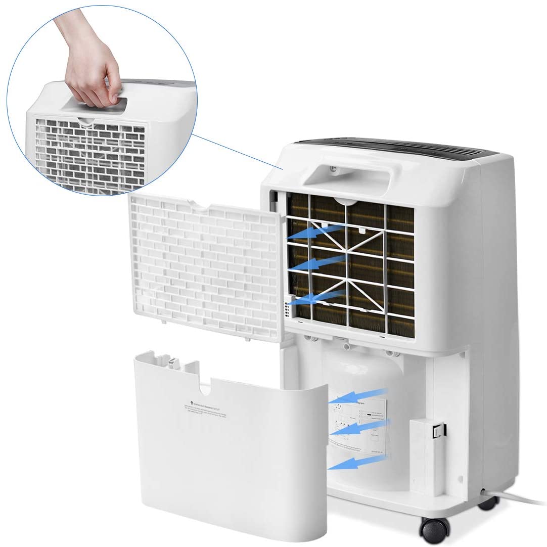 MULTIPLE HUMANIZED FEATURES. You can select between regular and turbo fan speeds for optimal comfort. The low-noise design will get you far away from the disturbing noise when sleeping or studying. The removable and washable filter means easy maintenance — Simply clean it regularly and then recycle. Program the 24-hour timer to suit your lifestyle and save energy costs. All of them can ensure you to have the best possible experience with our dehumidifier.