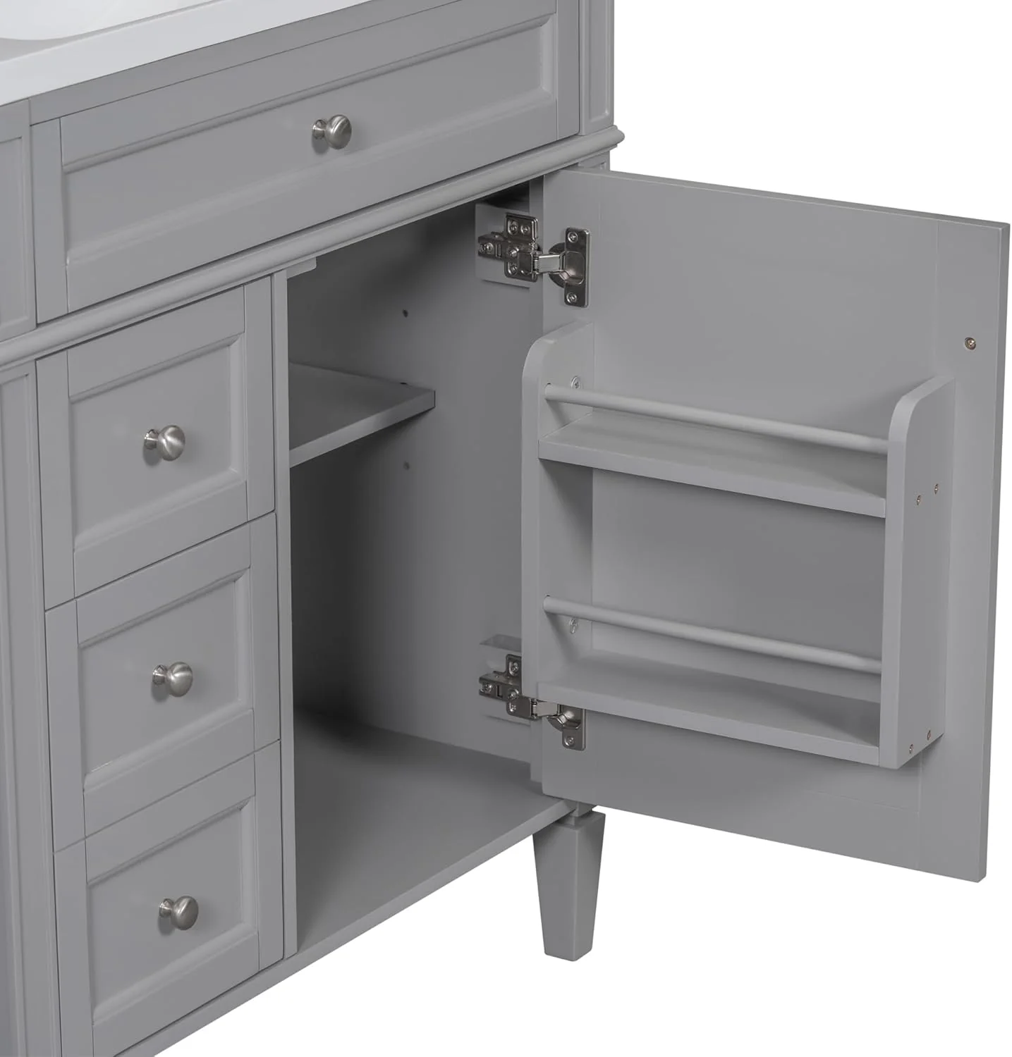 36" Bathroom Vanity with Single Sink Combo, Modern Undermount Bathroom Sink Cabinet with 2 Drawers and a Tip-Out Drawer, Freestanding Bathroom Vanities, Soft Closing, Solid Wood Frame