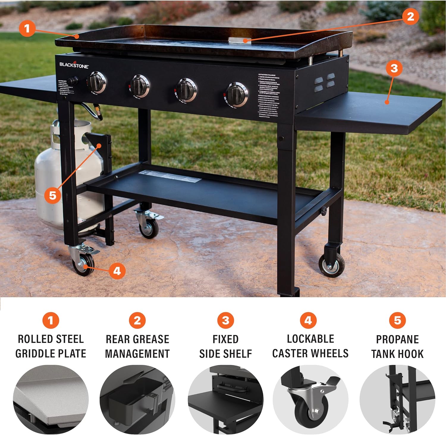 • 36" Gas Griddle Cooking Station 4 Burner Flat Top Gas Grill Propane Fueled Restaurant Grade Professional 36" Outdoor Griddle Station with Side Stands (1554)