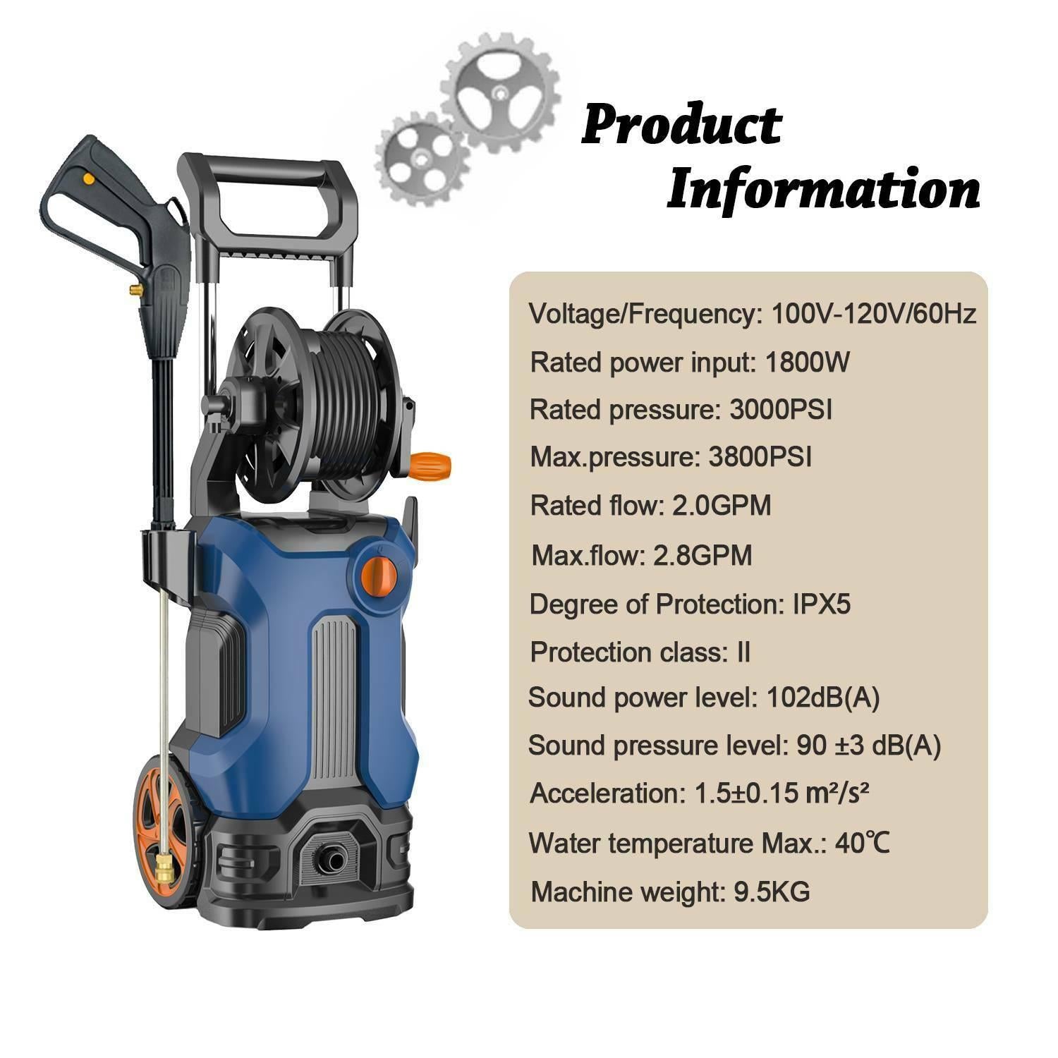 • 3800PSI 2.8GPM Electric Pressure Washer High Power Cleaner,Water Sprayer Machine-2