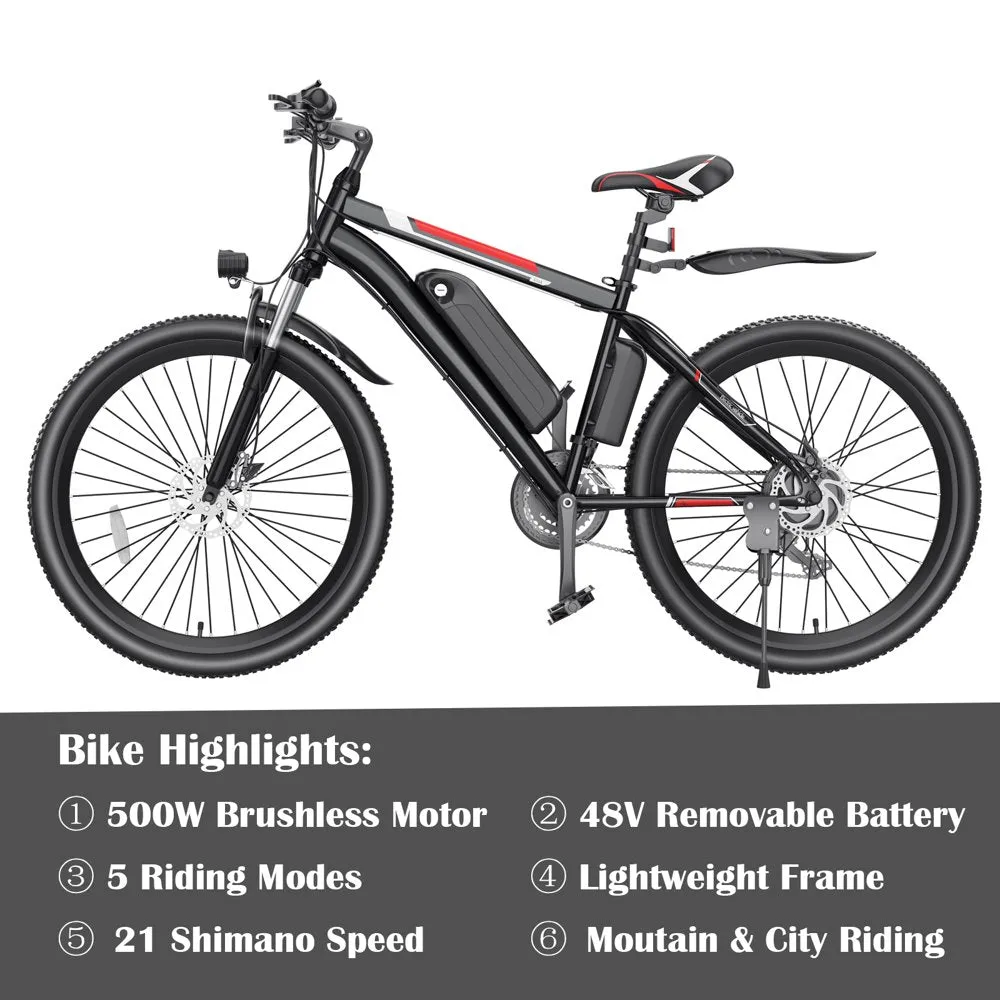 500W Electric Bike 26" Electric Bicycle for Adults with Cruise Control System Ebike