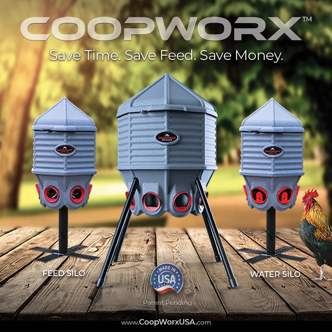 • 80lb Poultry Feeder, Adjustable Height, UV Stable, Weather Resistant, 8 Ports, Made in USA