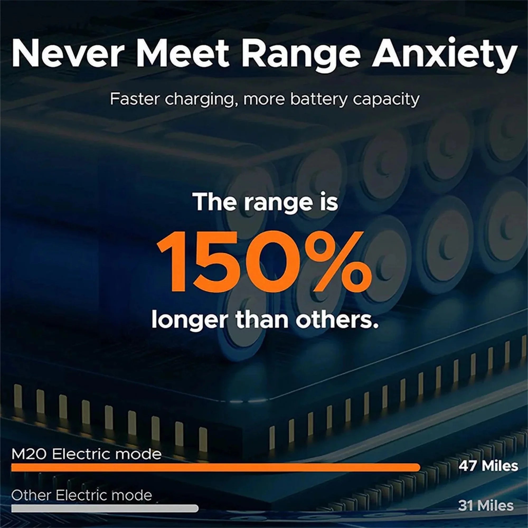【Best Retro Motorcycle-Style Ebike Under $3000】The Ebike is a retro light-duty electric off-road bike,based on the appearance and function of traditional off-road motorcycle redesigned, it has different highlights from other electric bikes. Smooth body lines de 【Upgraded 1000W Brushless Hub Motor and 7-Speed Gear System】 The 1000W peak brushless hub motor offers enhanced climbing ability, reaching speeds of up to 28 mph and 55N.m torque in pure electric mode, effortlessly conquering gradients of up to 35 degrees. The 7-speed gear system caters to all your riding and training needs. Additionally, it features brighter LED headlights and taillights to keep you visible and safe during nighttime rides. 【Extended Range up to 94 Miles with 48V 26A Dual Battery】 The dual-battery version offers a maximum range of up to 94 miles. In pure electric mode, travel up to 34.17 miles, or switch to assist mode for up to 47 miles. For the ultimate long-range experience, achieve up to 68 miles on a single charge, perfect for long rides on your cruiser or mountain ebike. 【All-Terrain Capability with 4.0*20 Inch Fat Tires & Full Suspension】 Equipped with 2 front fork spring shock absorbers, 2 seat shock absorber springs, and 2 puncture-resistant 20"X4" fat tires, providing outstanding shock absorption performance. Combined with front and rear mechanical disc brakes and the EABS system, you can enjoy a comfortable riding experience and powerful braking even on steep slopes, rugged terrain, or other extreme terrains. 【Safe and Quiet Ride with Dual LED Headlights & 30db Low Noise Level】 Ride confidently with dual headlights and taillights for enhanced visibility. Front and rear disc mechanical brakes offer smooth stopping power. The low noise level of just 30db ensures a quiet and peaceful journey. 【Certified and Reliable with UL Certification & Comprehensive After-Sale Service】 The UL certified ENGWE M20 comes 90% pre-assembled and includes a one-year warranty on motors, batteries, and controllers.