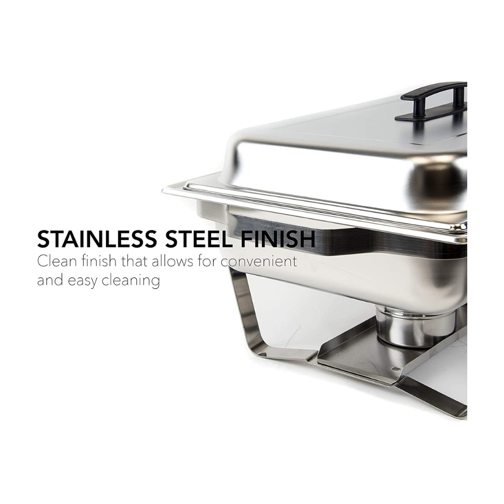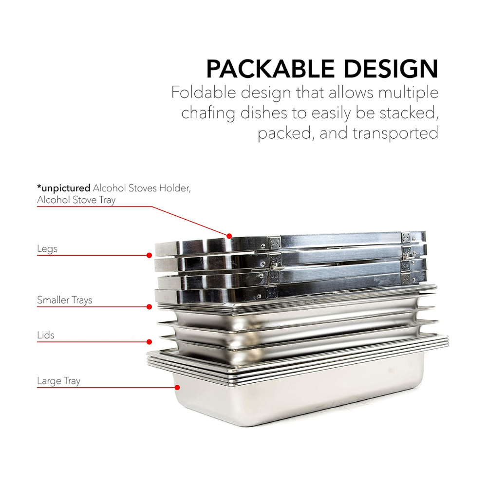 Alpha living’s 4 pack chafing dish allows for users to maintain their food heat, with a top-quality stainless-steel frame and body.