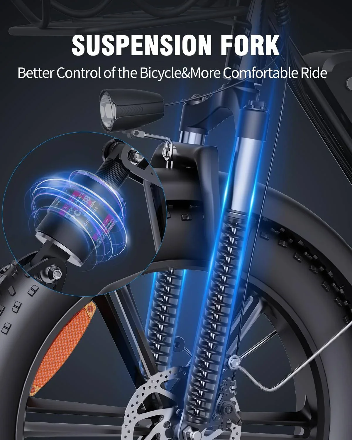 • Bopzin 1000W Electric Bike for Adults 48V 15Ah Removable Battery Ebike 20" x 4.0 - 1000W