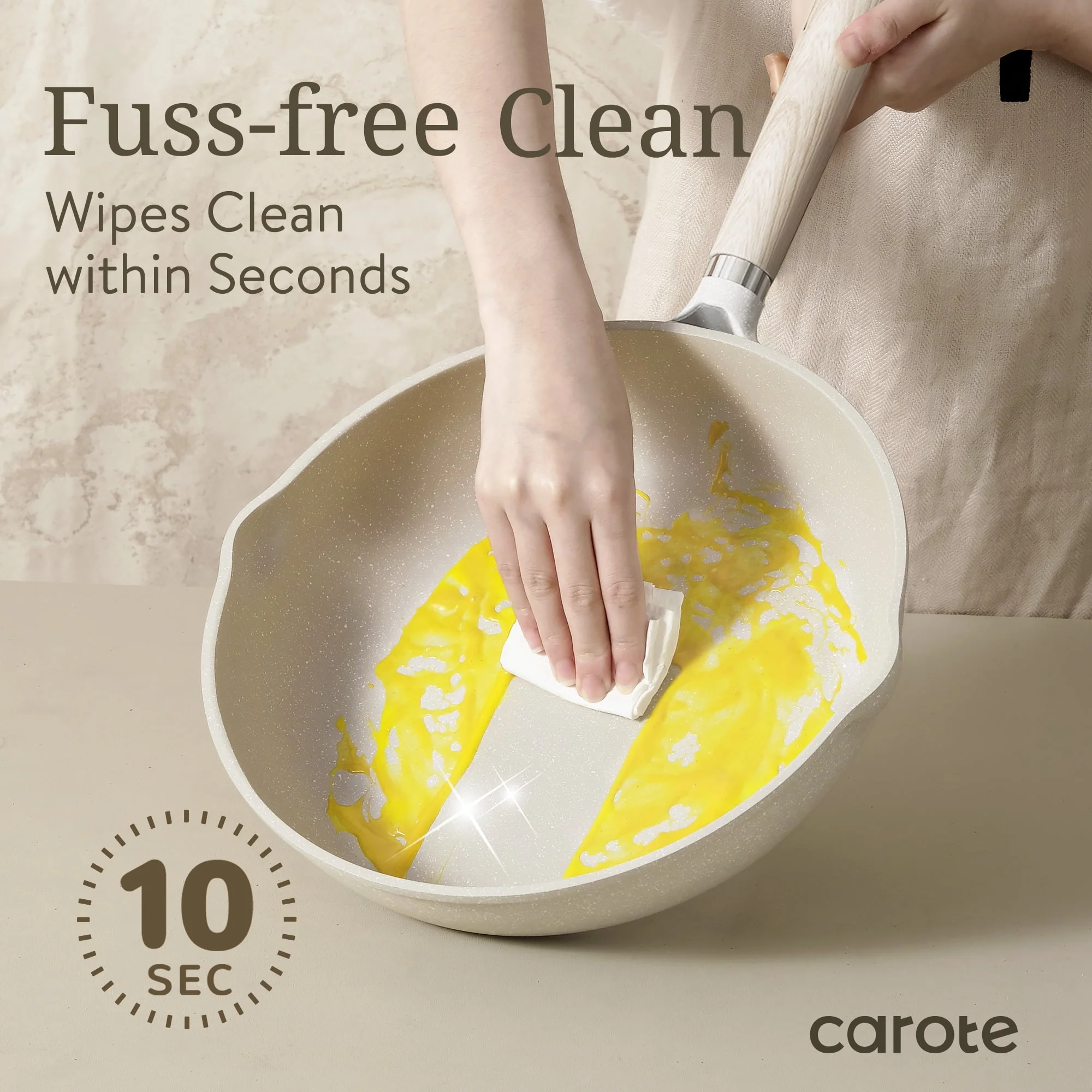 Carote Non Stick Pots and Pans Set, 21 Pcs Induction Kitchen Cookware Sets (Beige Granite)