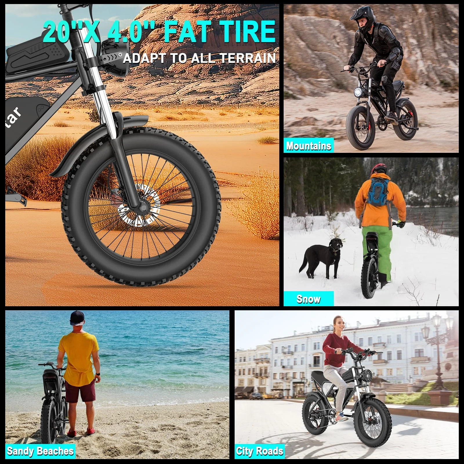 • Electric Bike for Adults Ridstar, 1200W 30mph Moutain Bike,48V 15.6AH Battery E-Bike,20" Fat Tire Electric Motorcycle,Electric Bicycle 7 Speed Full Suspension