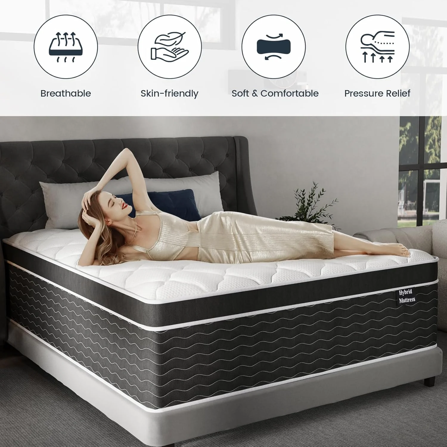 • Full Size Mattress, 10 Inch Full Size Mattress in a Box, Medium Plush Hybrid Mattress