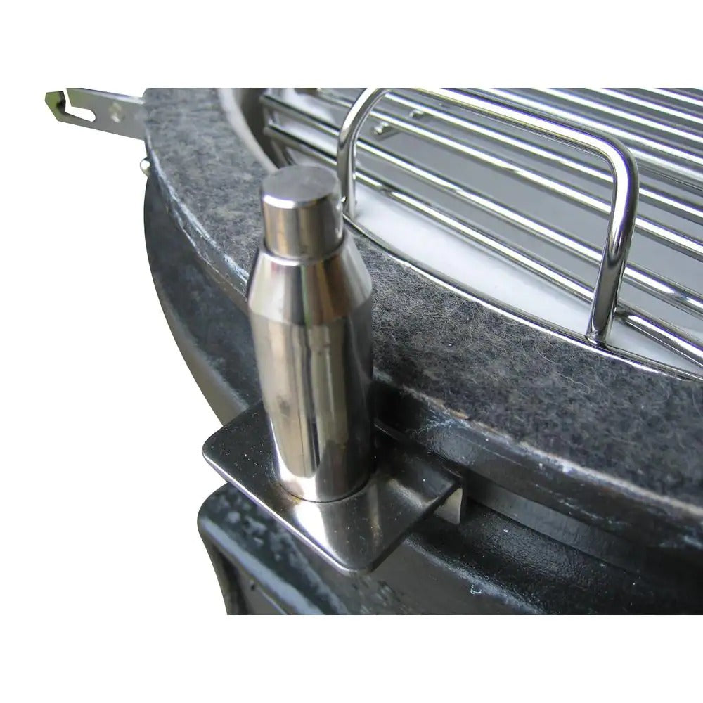 Experience the flavor of Kamado style cooking. The Grills Kamado Pro replicates wood oven cooking and provides flexibility to sear, grill and smoke meats and vegetables as well as bake pizzas and bread. The Grills Pro zone will take your grilling experience to a new level with an electric starter port for lighting ease, dual calibrated draft vents for superior temperature control and a removable ash drawer for easy clean out. The grill is constructed of high grade ceramic and delivers 604 sq. in. with 2-tiered stainless steel flip grates. Includes 2-solid surface drop down shelves, aluminum alloy calibrated top vent and cart with locking rollers for mobility and a full length heavy duty vinyl cover.
