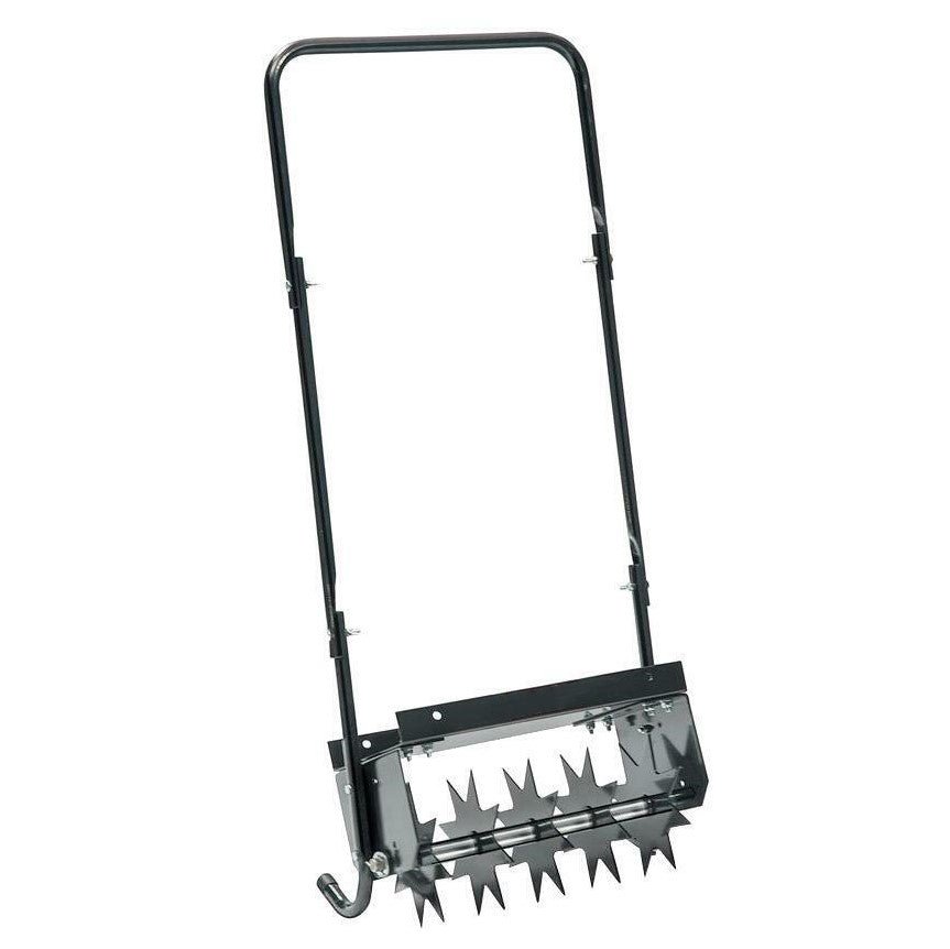 • USER-FRIENDLY - The soil is punctured by a set of rotating tines with star-shaped blades, creating a pathway for grass roots to receive additional seed, fertilizer, water, air, and sunlight. With 5- to 7-inch-long spikes, it can aerate soil up to a depth of 2-1/2 inches. The lengthy axle covers a broad 16-inch width, allowing for efficient coverage of large areas. Moreover, it is equipped with a steel weight tray that can accommodate a concrete block, which is used to drive the spikes deep into moist soil.