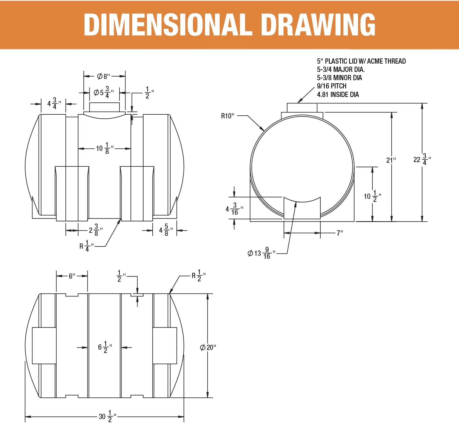• Horizontal Polyethylene Reservoir Water Tank with Legs, 550 Gallon, Made in the USA, Poly Tank for Water and Non-Flammable Liquids, Rust and Corrosion Proof