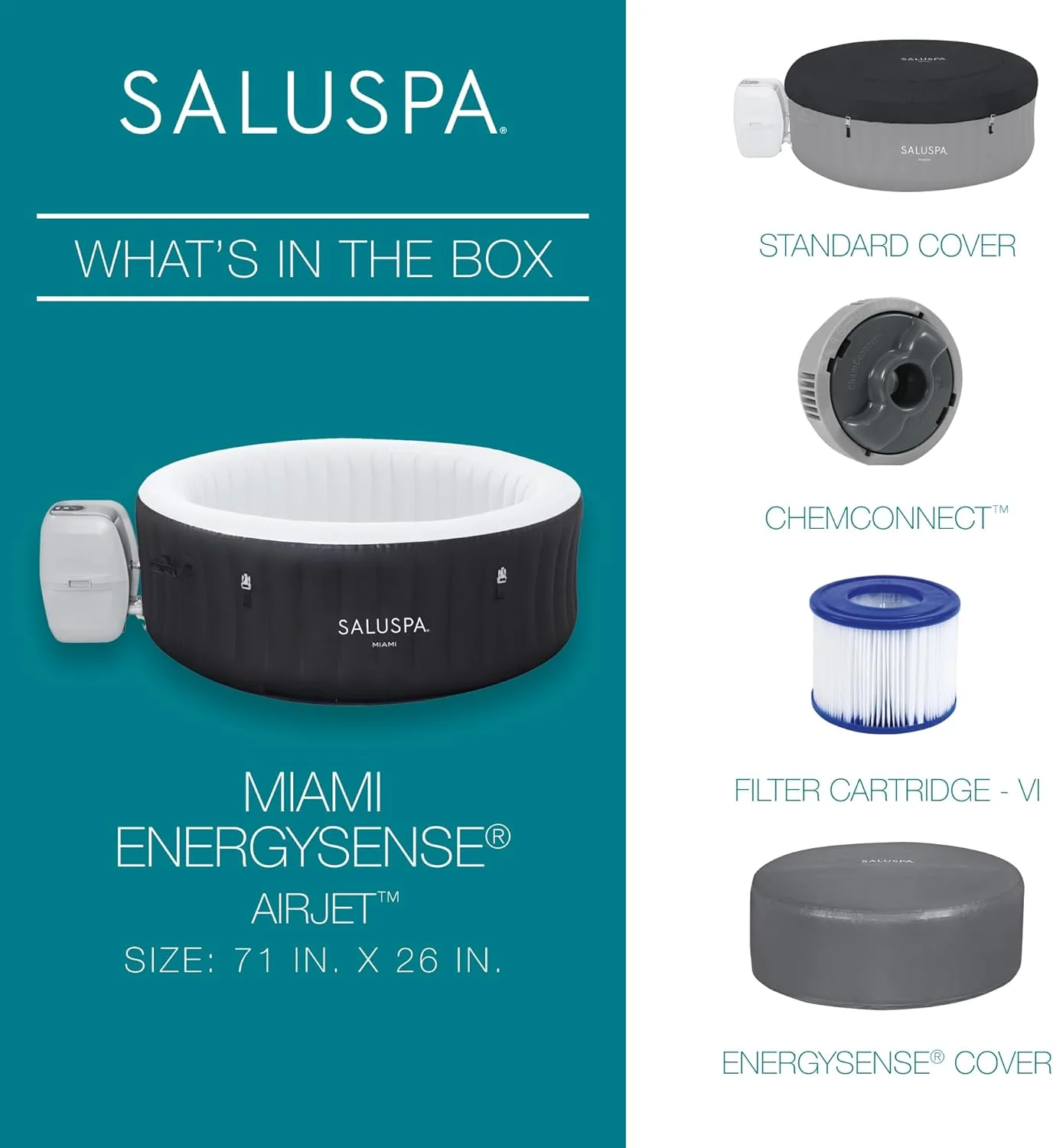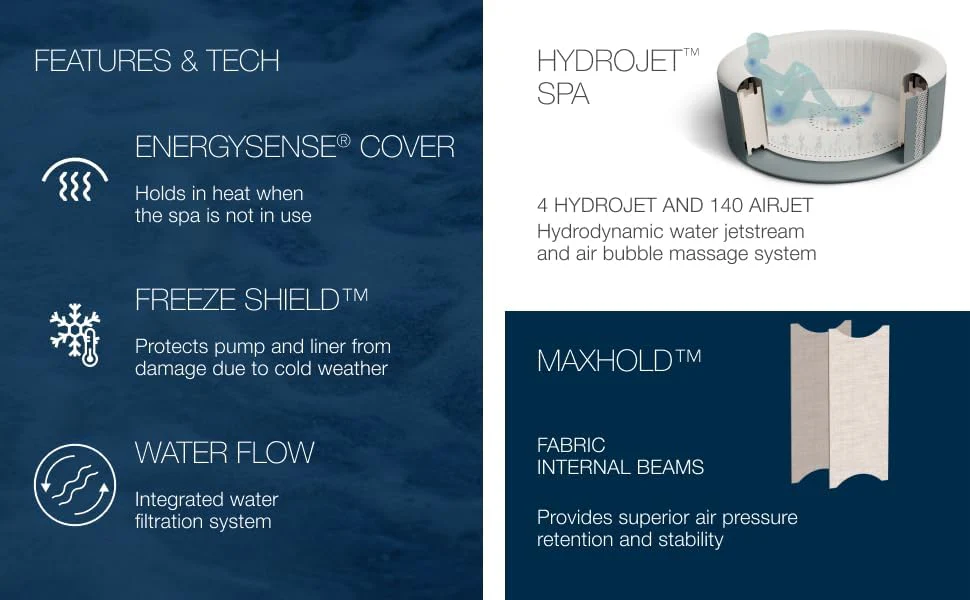 • Inflatable Hot Tub Spa (71" x 26") | Portable Hot Tub with 2 Covers (1 Energy-Efficient Thermal Cover and 1 Standard Cover) | Fits Up to 2-4 Persons | Black