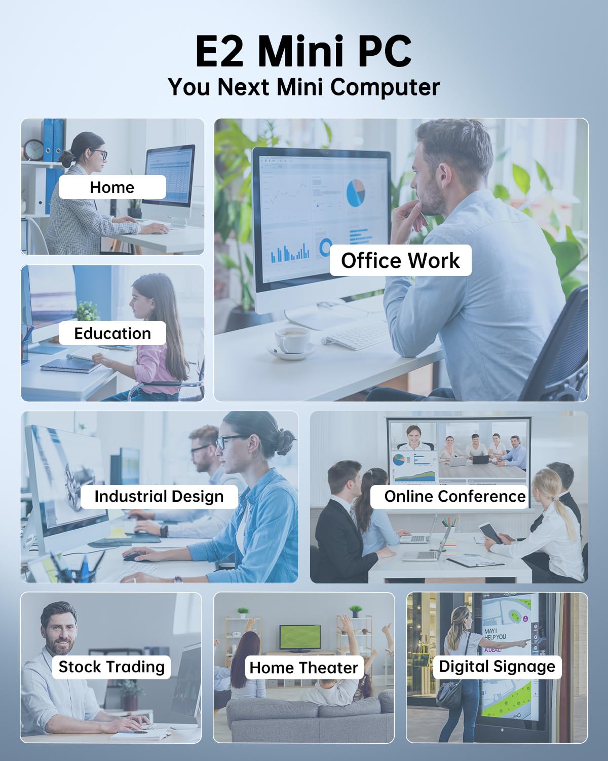 Designed for versatility, this mini PC is ideal for use as a home theater PC (HTPC), office workstation, digital signage, or even a lightweight gaming machine for casual titles. Its small size allows it to be placed discreetly on a desk, mounted behind a monitor with VESA, or tucked away in tight spaces.