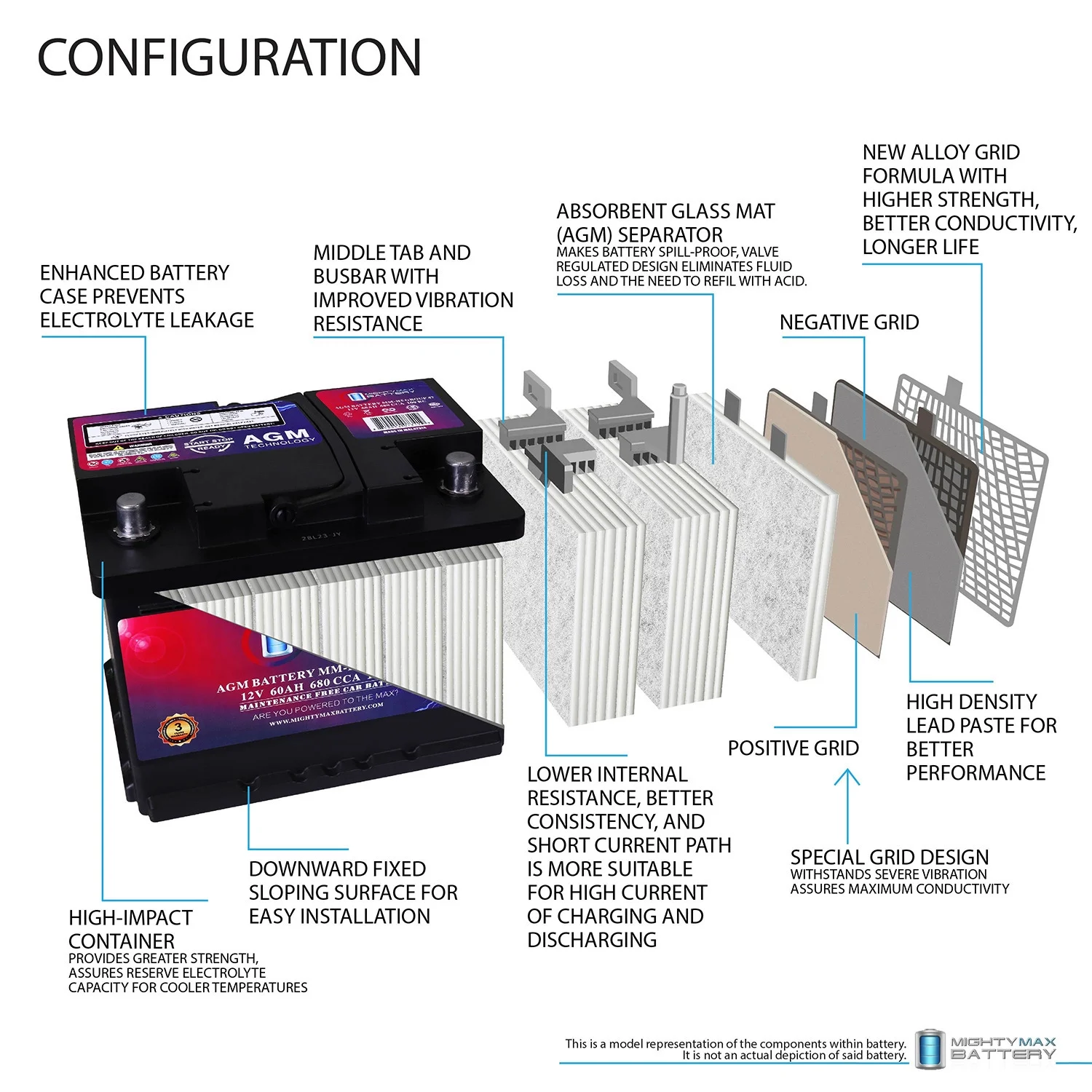 MM-H5 Start and Stop Car BCI Group Size 47 12V 60 AH, 100RC, 680 CCA Rechargeable AGM Car battery