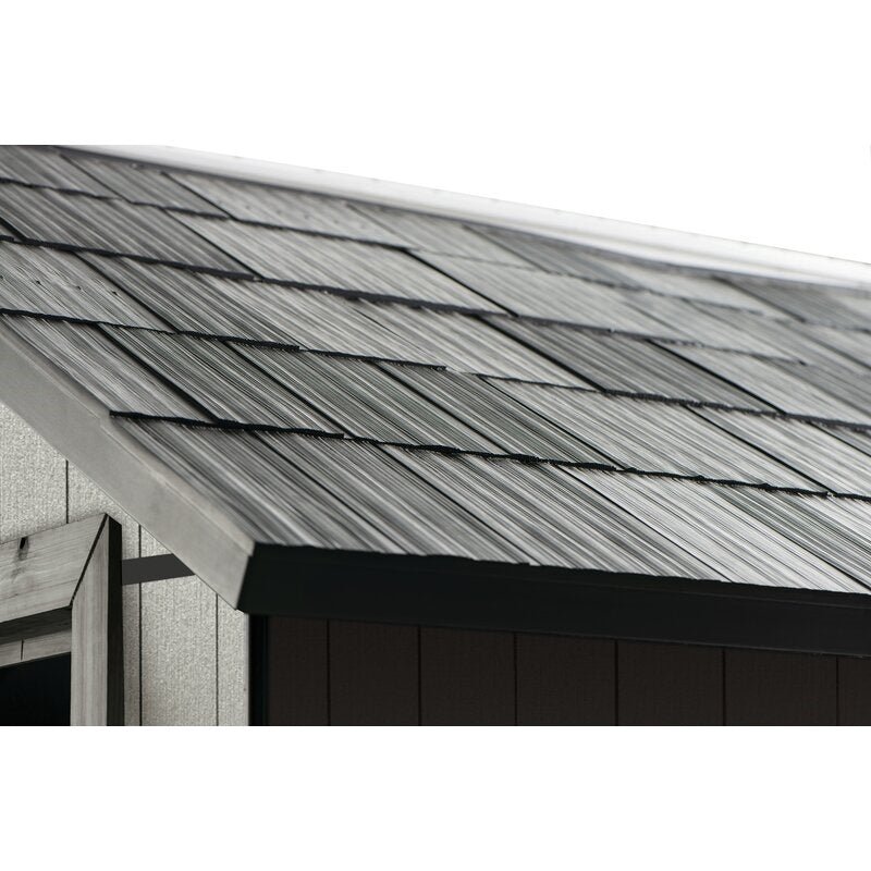 The Oakland 7 by 7 provides reliable outdoor storage for lawn care items, gardening equipment, and more. This storage building offers ample space for organizing anything that you need to use outdoors. Organize your rakes and shovels, store outdoor furniture and toys, protect potting soil from the elements and keep birdseed away from outdoor pests with this reliable plastic shed. The Oakland shed features a unique polypropylene resin material with the look of rough-hewn wood. This rugged appearance blends in with your outdoor landscape, making the shed a natural part of the yd from the moment you set it up. If the original color doesn't match the theme of your home, this storage shed can be painted as desired, a feature you won't find with any other resin shed. The double doors mimic the look of real wood while the Victorian-style window brings a touch of elegance to this storage building.