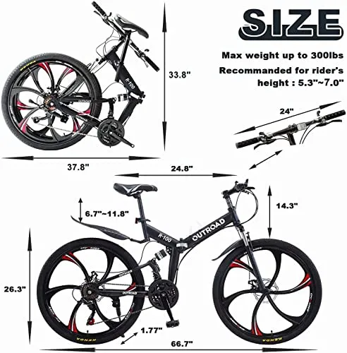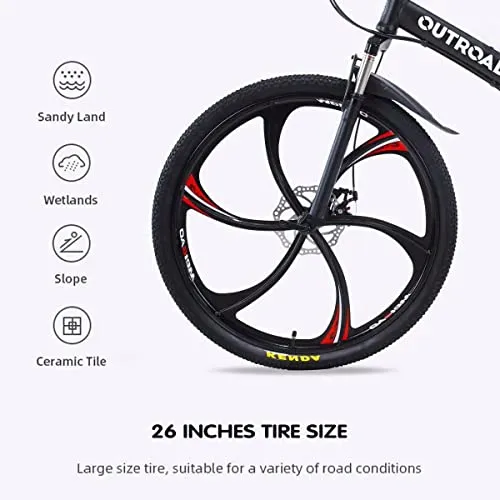 The Outroad 26 Inch Folding Mountain Bike is a practical and high-performance solution for adult riders who want the capability of a mountain bike with the convenience of a foldable design. Whether you're commuting to work, exploring light trails, or need a bike that stores easily in small spaces, this dual-suspension MTB delivers comfort, versatility, and reliability.