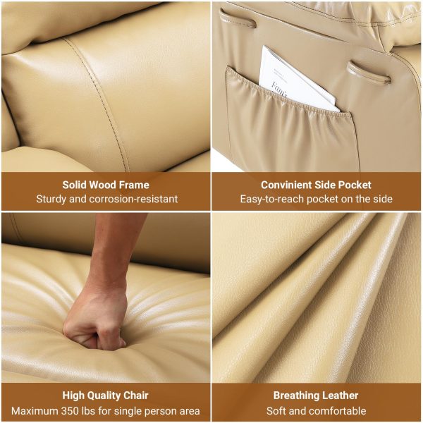 • PU Leather Power Lift Recliner Chair With Massage and Heat, Adjustable Furniture for Back, Legs w/ 3 Positions, Usb Port, Side Pocket (Beige, 27 Seat Width+Cup Holders)