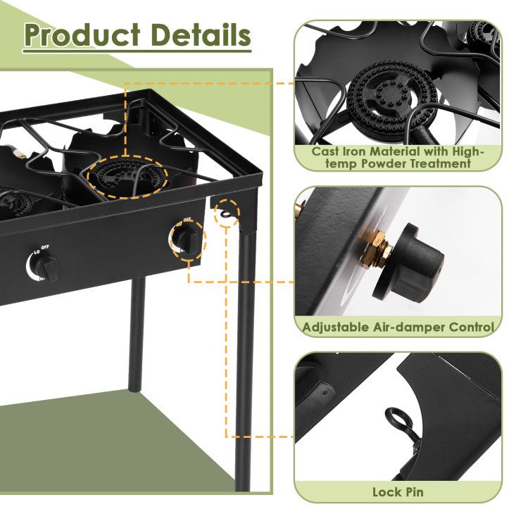 • DETACHABLE LEGS - This outdoor stove triple burner features legs that can be detached, making it compact for easy transportation and storage.