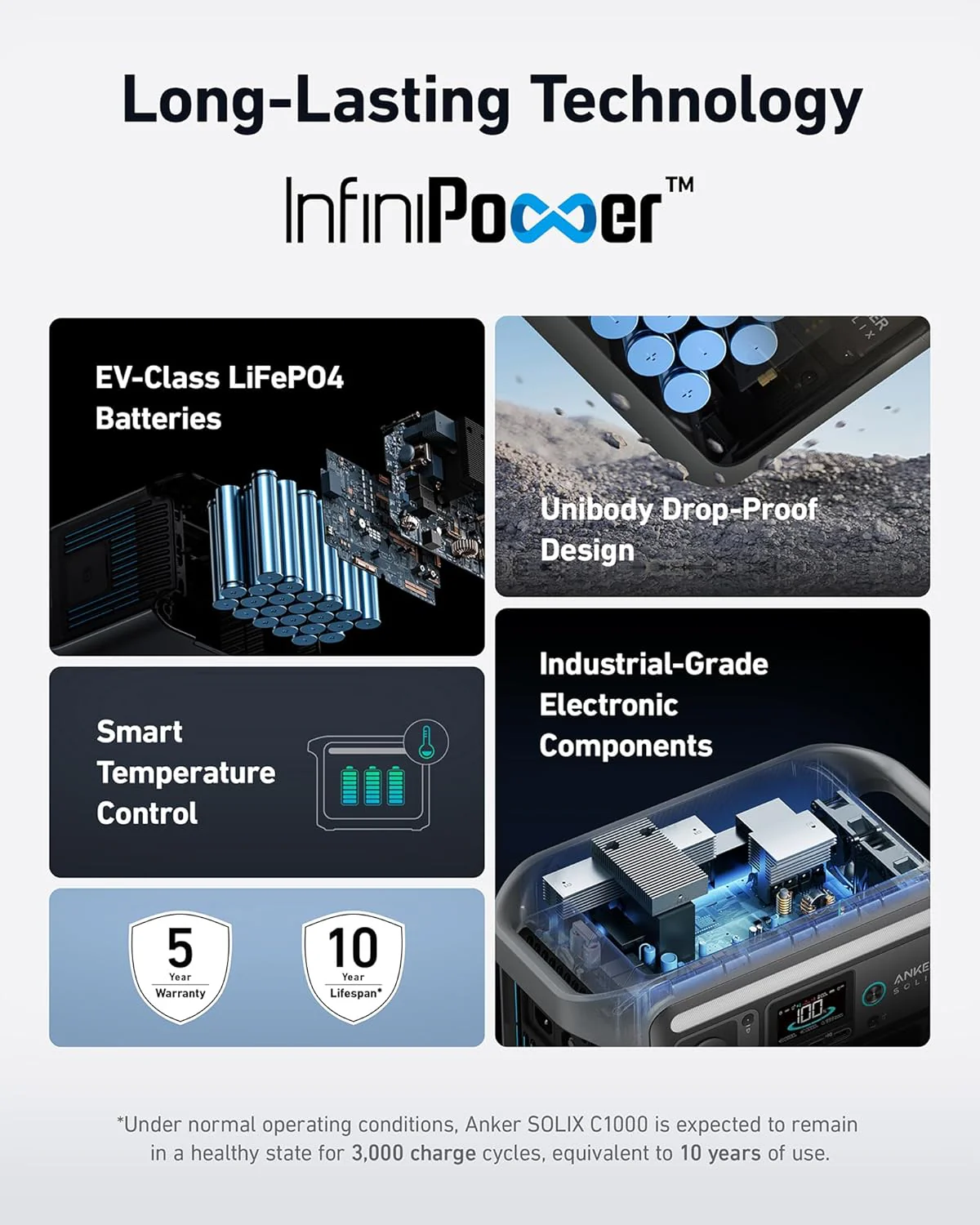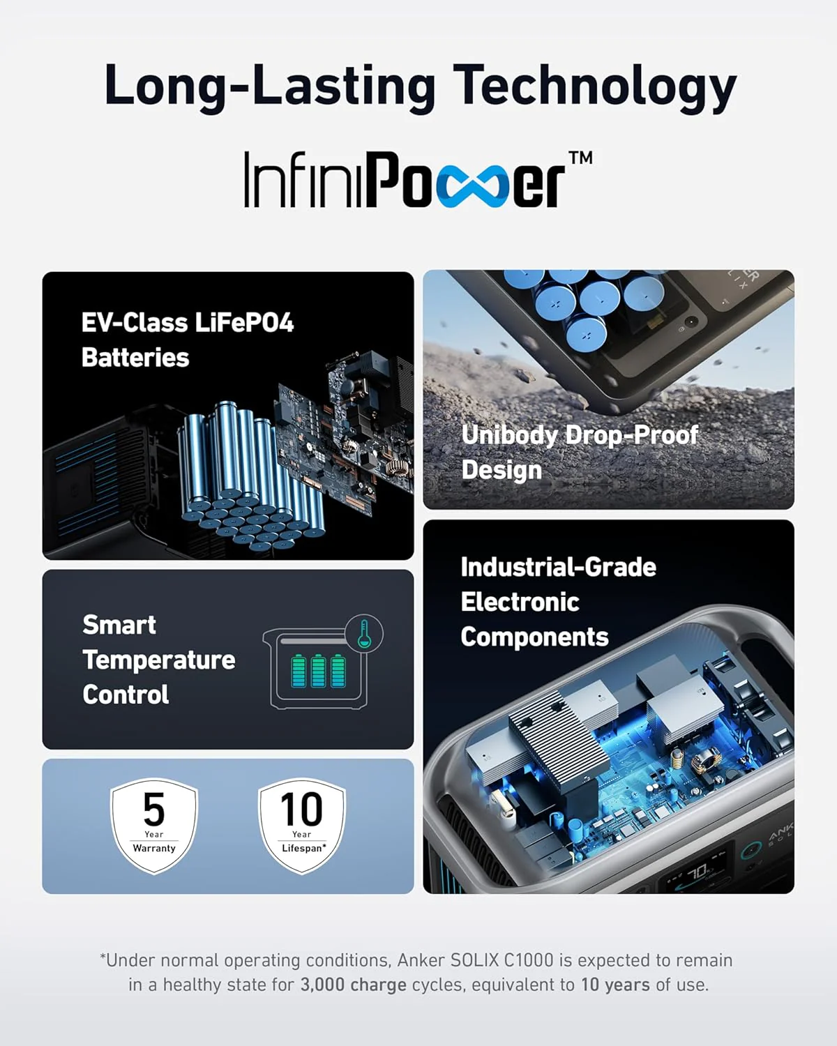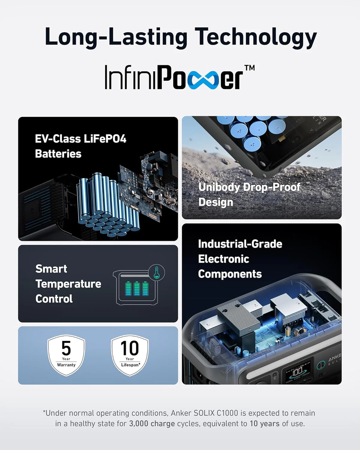 • Portable Power Station, 1800W (2400W Peak) Solar Generator, 58 Minutes to Fully Charge, 1056wh LiFePO4 Battery,