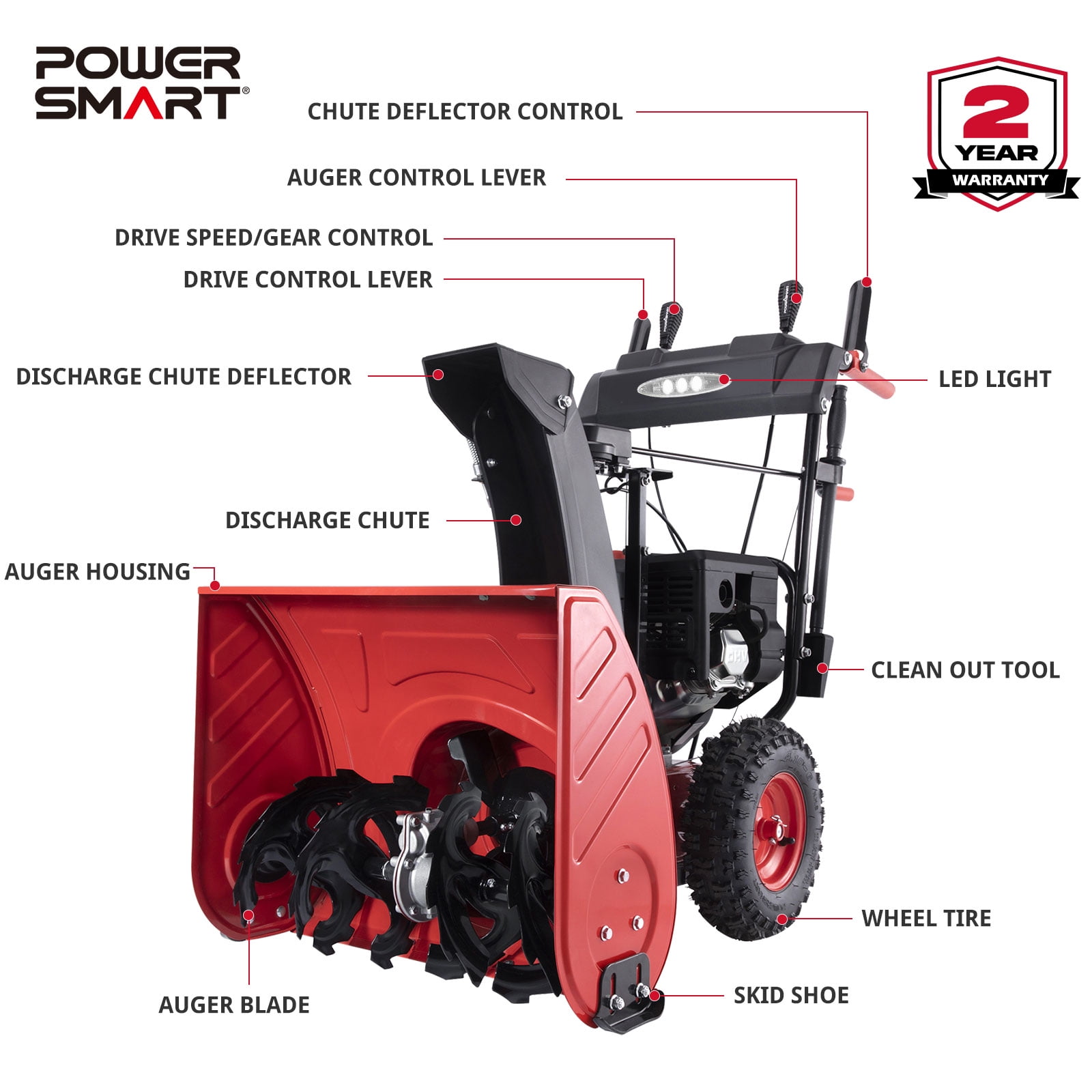• PowerSmart 26 252CC Self-Propelled Gas Snow Blower with 120V Electric Start, Two-Stage Design