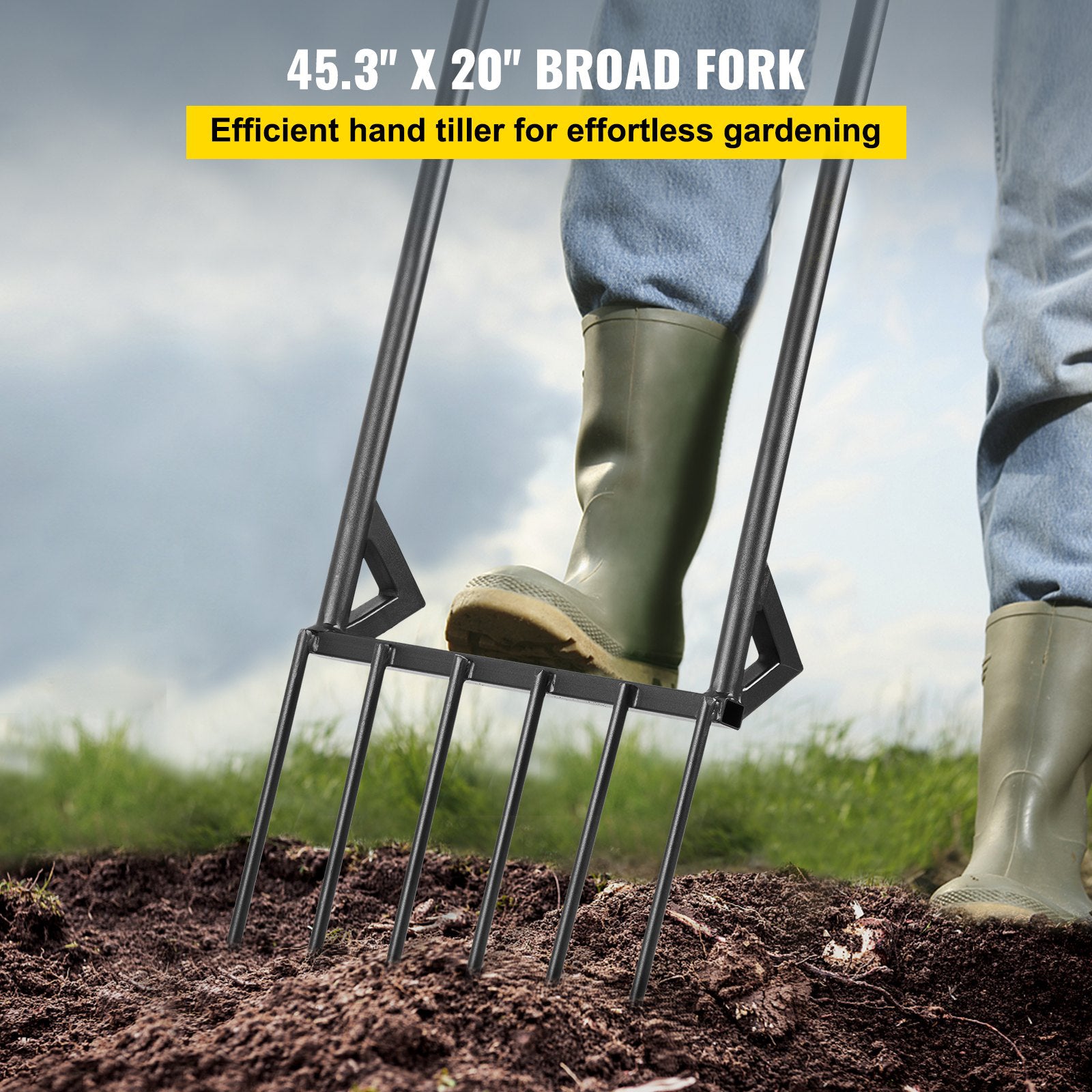 - WIDE APPLICATIONS - Our broad fork ground tiller is suitable for breaking up the hard soil of your farm or garden to prepare for cultivating. It can also be used for weeding or harvesting potatoes, carrots, and other root vegetables.