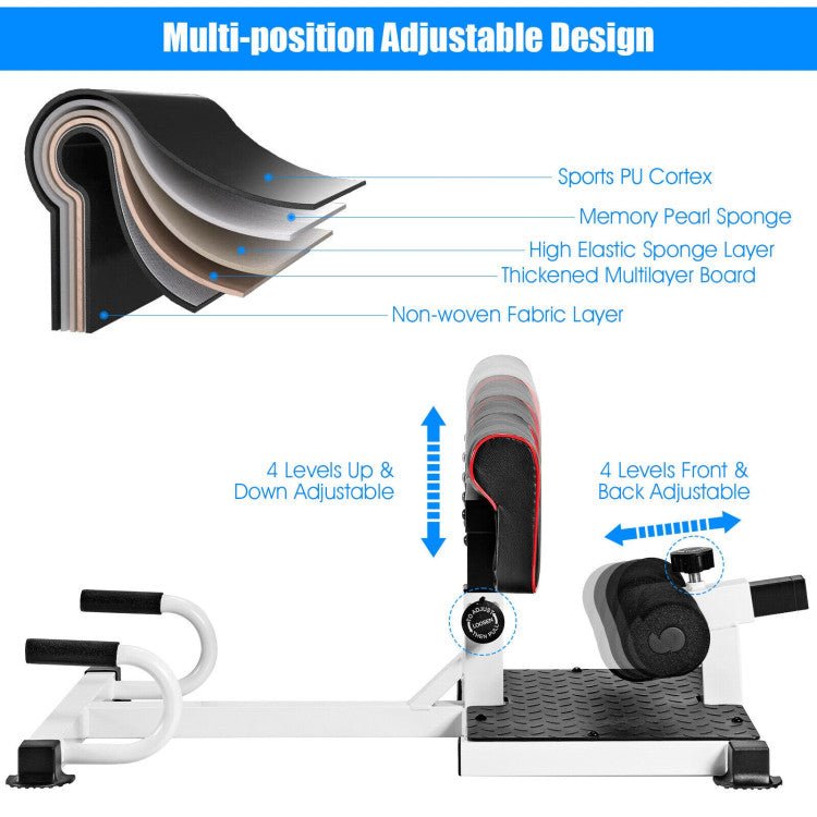 Thanks to its wide application,�our squat exercise�equipment can be used for multiple workouts such as sissy squats, sit-ups, and push-ups, which effectively activate your thighs, abdominals, back, and other body parts' muscles to improve your strength, balance, immunity, etc. It's just like having a personal gym in the comfort of your home!