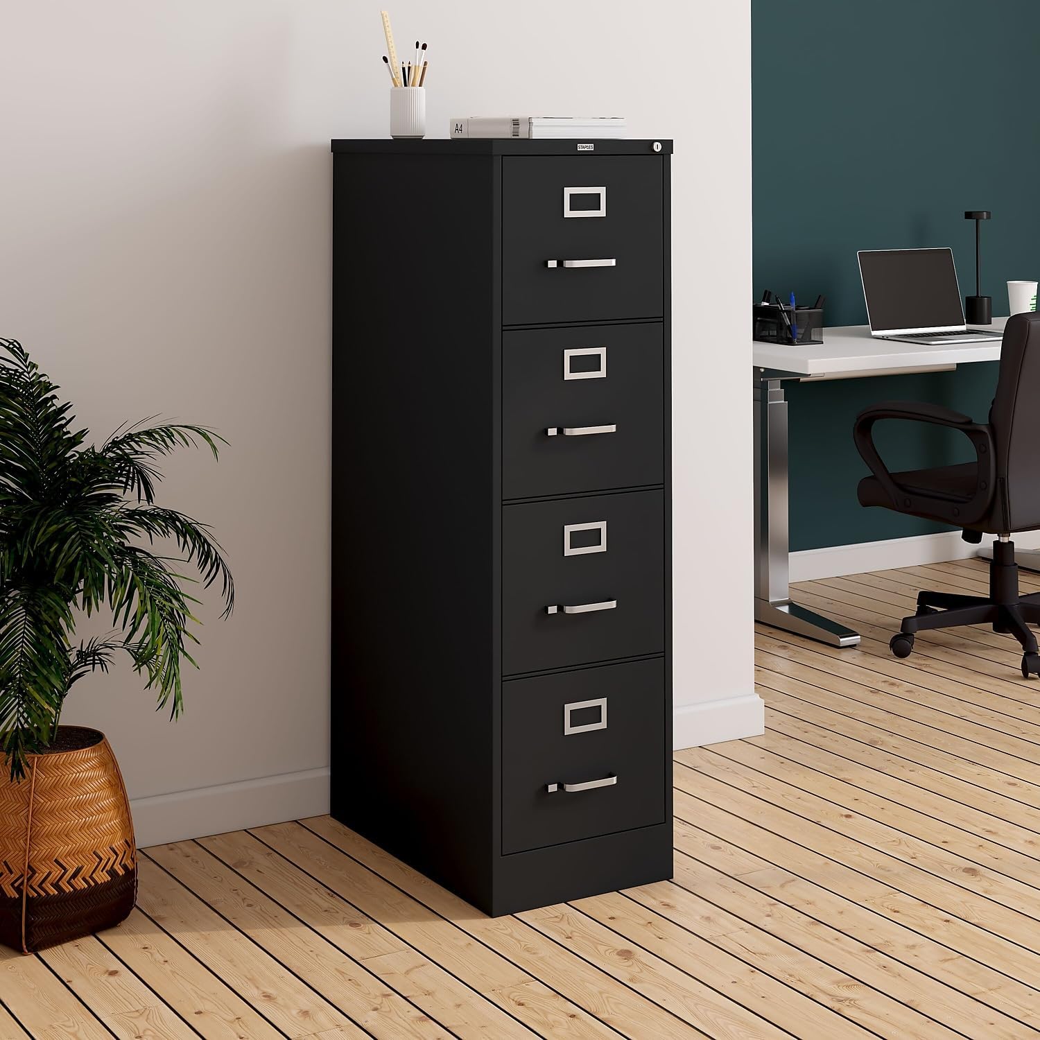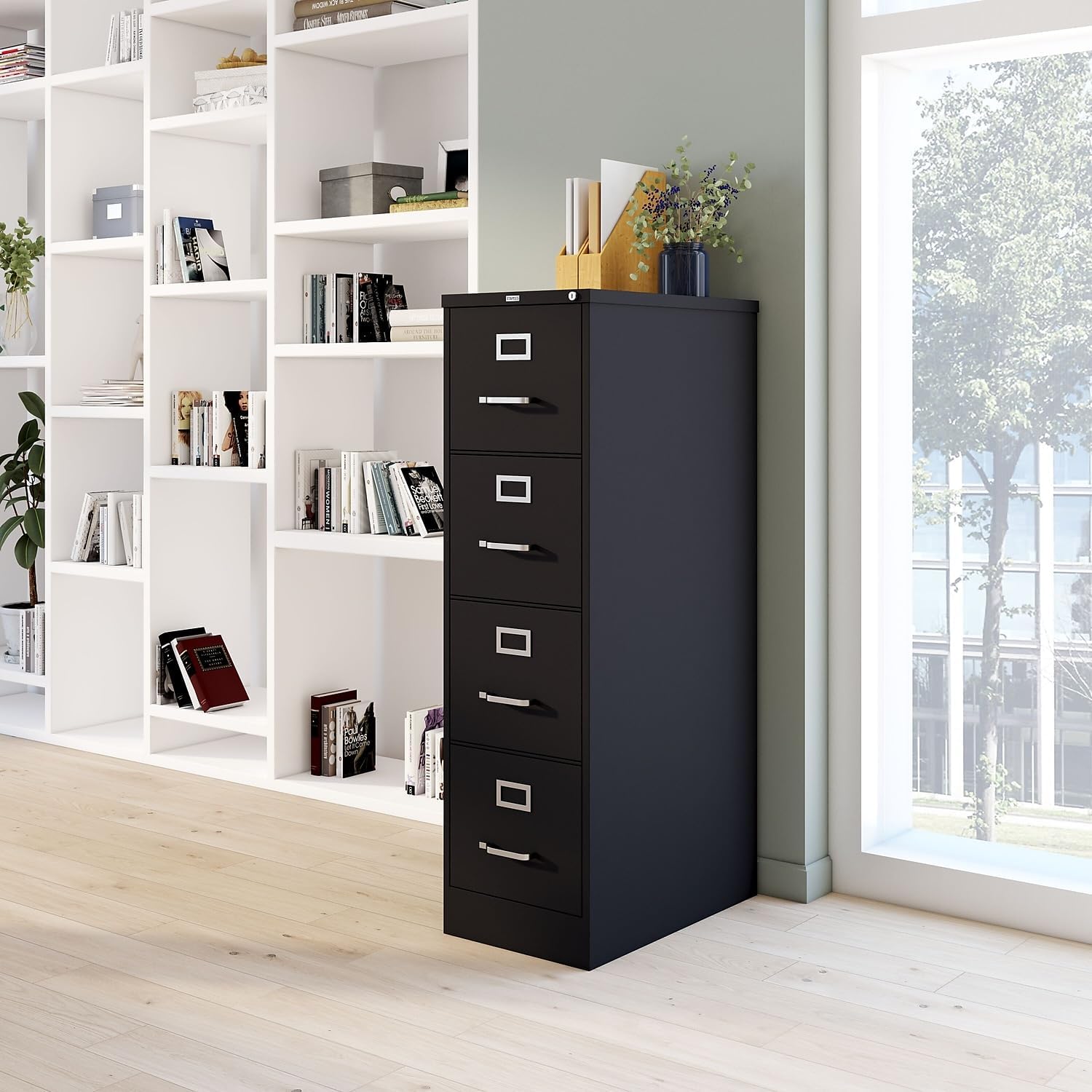 STAPLES 4-Drawer File Cabinet, Lockable, Black, 25"D x 15"W