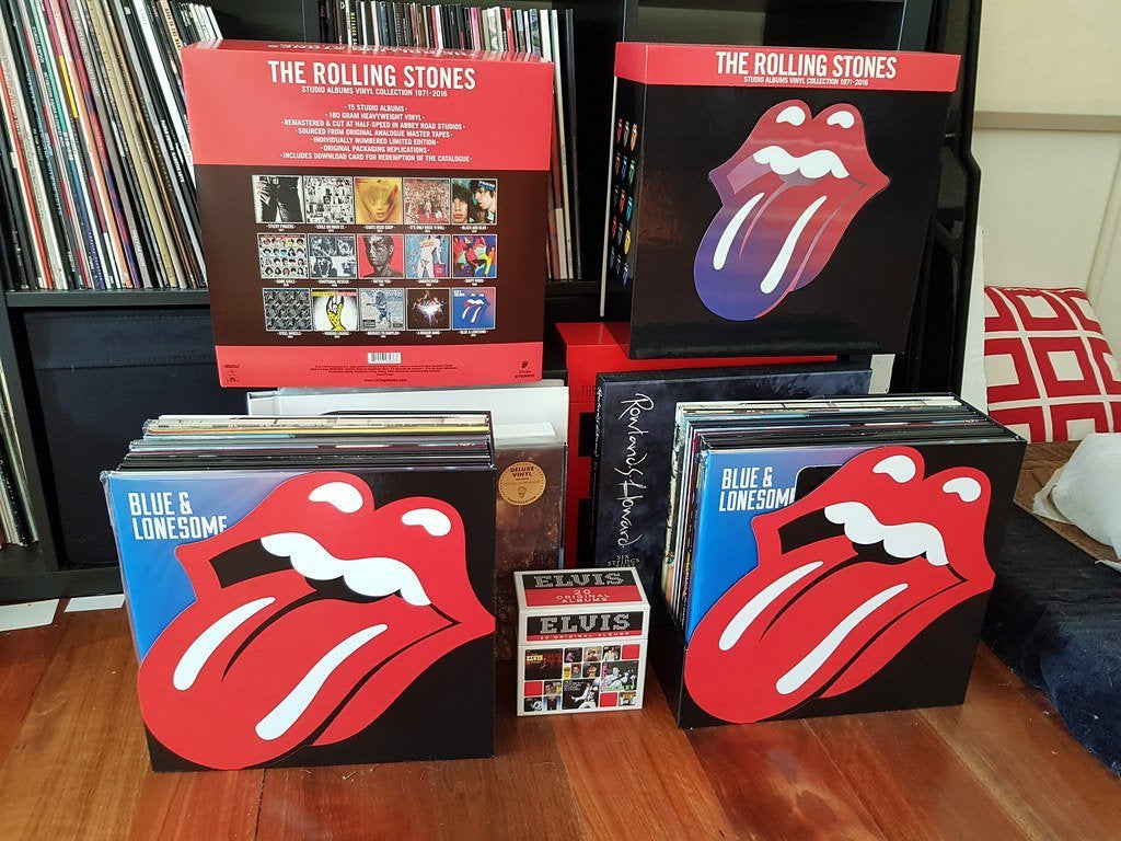And so we now have the band��s post-Decca recordings collected as Studio Albums Vinyl Collection, 1971-2016. The 20LP box contains every studio album the band released after leaving Decca, beginning with 1971��s Sticky Fingers and continuing through 2016��s Blue and Lonesome. Each LP comes housed in a replica of the original album cover. The set itself is contained in a heavyweight cardboard box with high-gloss artwork and a die-cut, lenticular version of the label��s (and band��s) famous tongue logo.