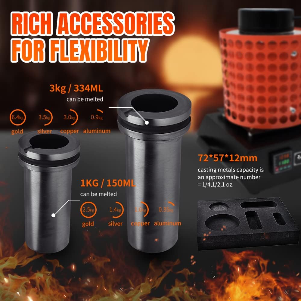 TOAUTO Gold Melting Furnace TGF3000-V1.1, 1+3KG, 1400W, 2100F