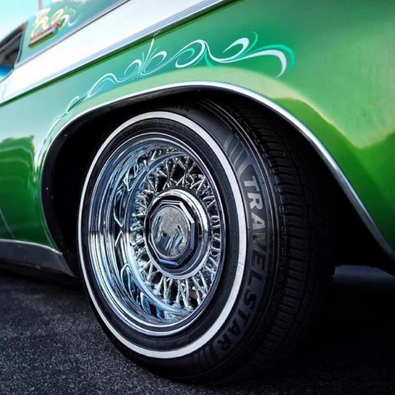 Size: 215 70 R15, Tire Only - Wheel/Rim Not Included Max Pressure (psi): 44; Load Index: 98 (1620 lbs for single tire) 50,000 Mile Limited Tread Wear Out Warranty and Road Hazard Warranty. White Wall Width 18mm for a classic look. Original comes with blue coating, easily wiped off to reveal the white wall tires. Dimension (inch): 28.9 x 8.7 x 28.9, weight (lbs): 23.66