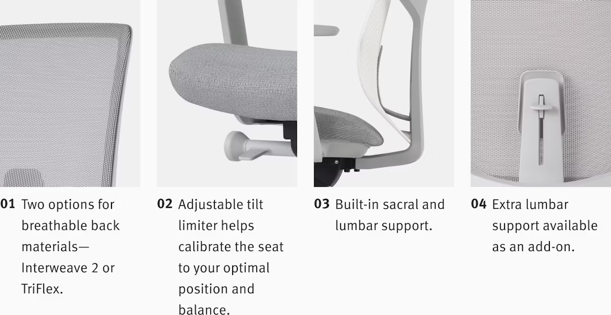 Don't let its clean silhouette fool you. This comfortable office chair is chock full of benefits — with sacral and lower lumbar support integrated directly into the back of the chair for simple but efficient comfort. Want more personalized comfort? Verus has you covered. Choose between two breathable options for the seat back: Interweave 2, a supportive suspension fabric, or TriFlex, a durable and easy-to-clean polymer. Or spring for extra lumbar support with a handy add-on option.