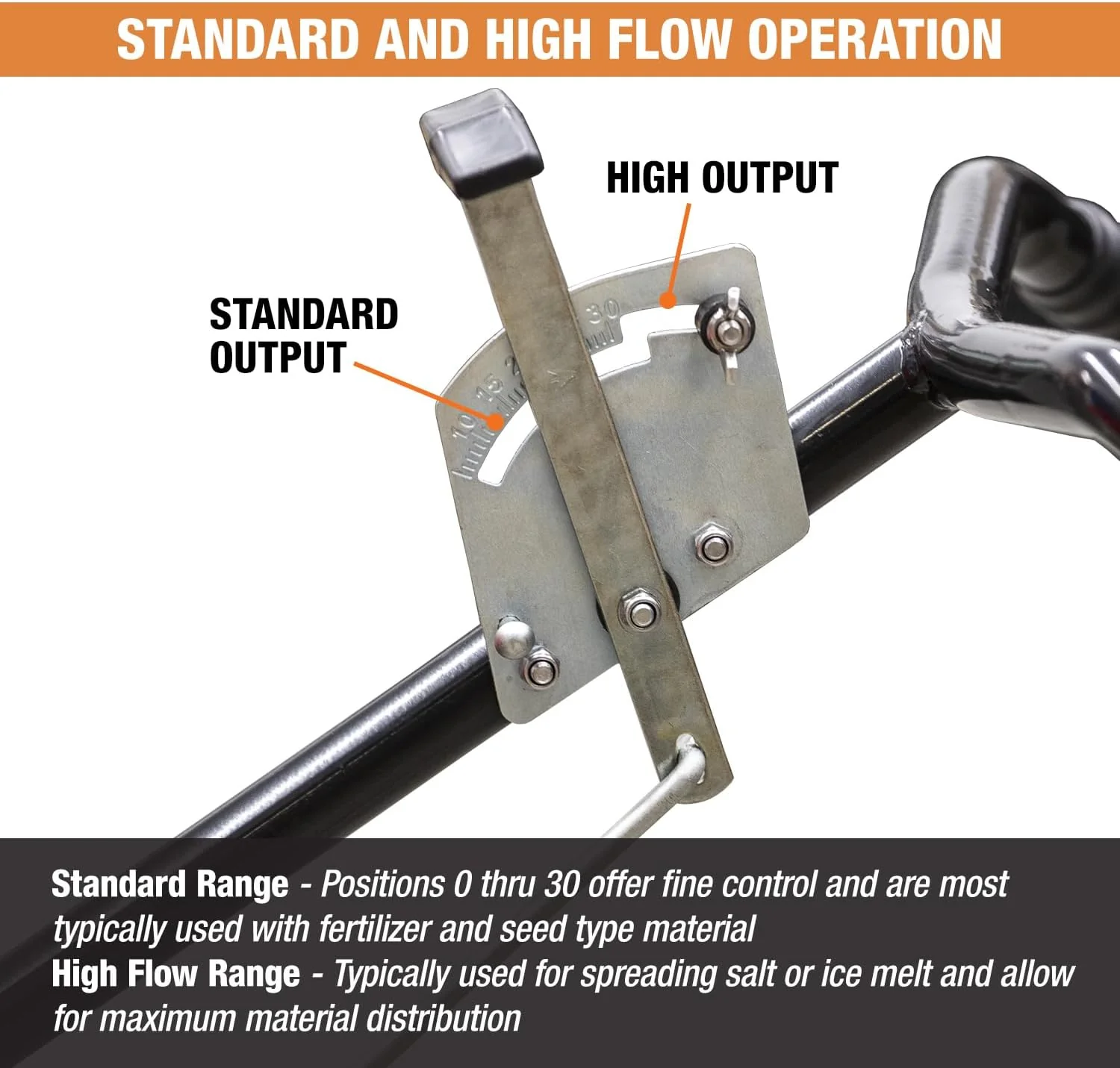 • Walk Behind Push Spreader, 100lb Capacity, For Salt, Ice & Snow Melt, Included Grate & Cover With Enclosed Gearbox for Protection.