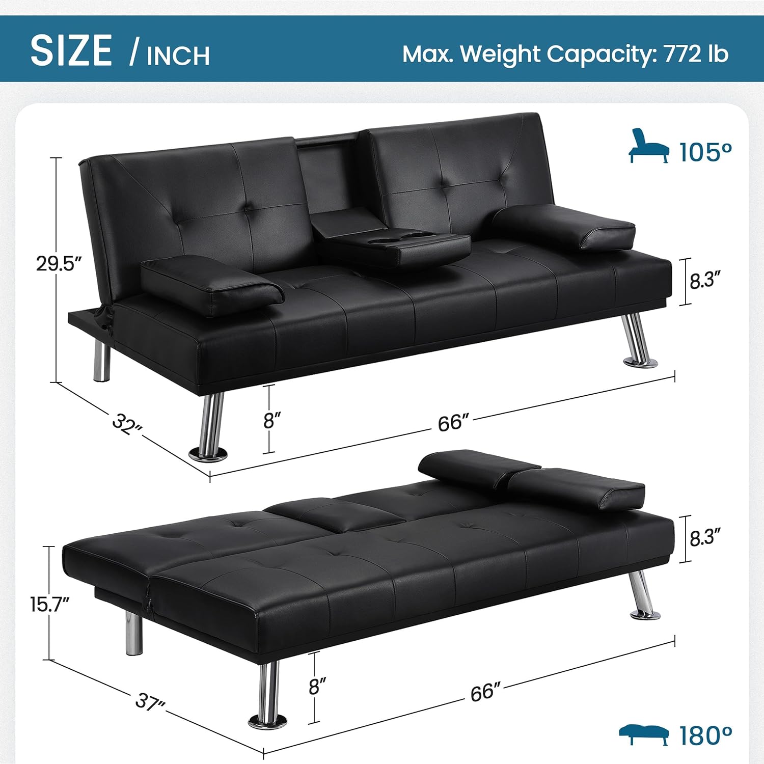 - 【HIGH-QUALITY MATERIAL】: The sofa bed is made of high-quality artificial leather, steel, polyurethane, and plywood material, sturdy and durable to use; the maximum load capacity is 350kg/772lb.