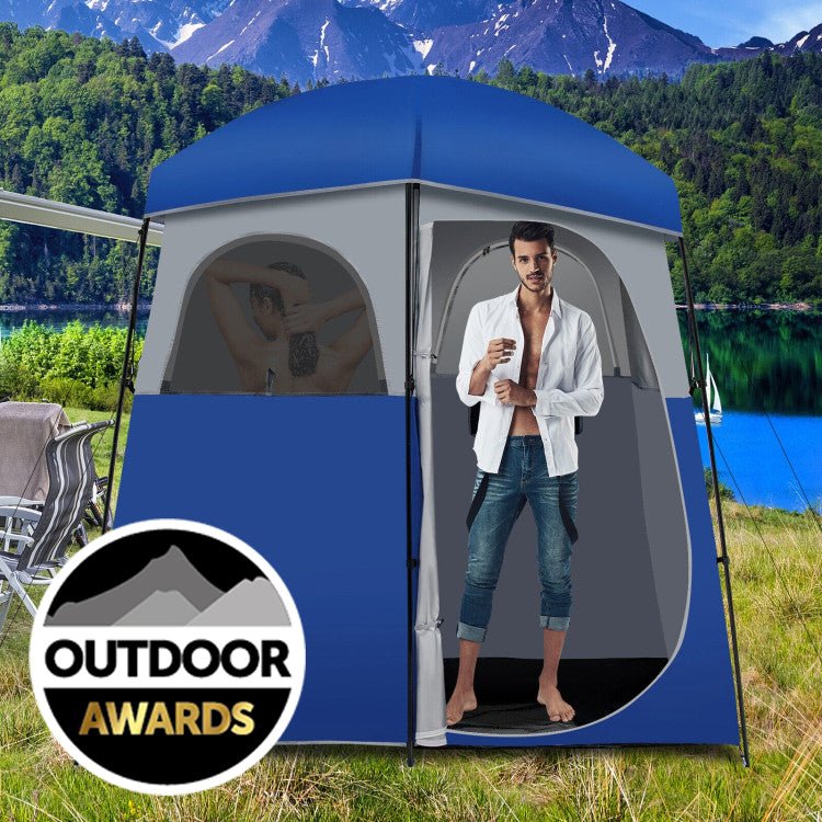 Sturdy Double-Room Camping Privacy Shower Toilet Tent W/ Storage Bag